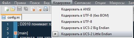 Начиная с D2009, в Delphi появился нативный Unicode, однако в порывах использовать его в IniFile-ах может возникнуть некоторая заминка. Для того, чтобы TIniFile смог адекватно прочесть ваши unicode-cтроки, необходимо сохранять файл в кодировке USC2. Но на этом приколы не заканчиваются, сохранять нужно именно в USC2-Little Endian, а не Big Endian, в противном случае, класс не сможет прочесть Boolean переменные. Такие вот пироги =(