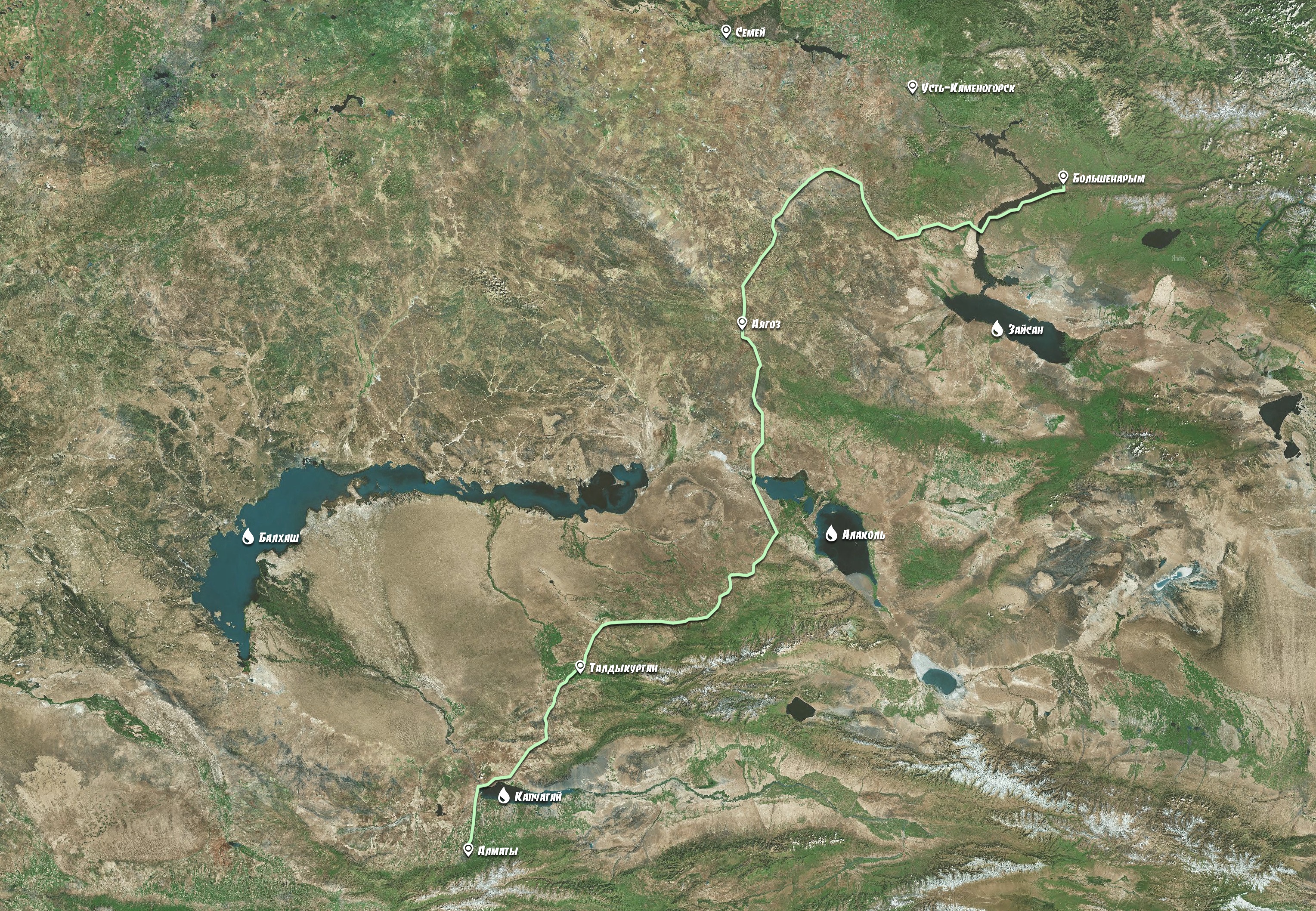 Начнём с дороги. Выехали мы из Алматы. Поехали через Капчагай, Талдыкурган, Аягоз, Георгиевку и паром. Дорога до Капчагая в ремонте, сплошные объезды. Часть дороги до Талдыкургана (половина, наверное) бетонка со знаками 50км\ч. Оштрафовали нас знатно. ГАИ с радами гоняет даже по ночам. За Талдыкурганом примерно 200-250км примелимой дороги, можно ехать 90км\ч+ и не переживать за большие ямы. Затем, начинаются вырезы в асвальте (км 100) и волны. Т.е. асвальт поплыл. На нашем перегруженном Carib-е это привело к поломке амортизатора и чего-то там ещё. Пока ещё не чинили. Дорога, мягко говоря, плохая. Но для авто с большим дорожным просветом, вменяемым водителем, не перегруженном, и с хорошей амортизацией сойдёт. Дабы не делать крюк, и не заезжать в Усть-Каменогорск, мы поехали через Георгиевку (Кокпекты, кажется) и на паром. Переплыли водохранилище и по щебёнке ещё км 60 до лагеря. Суммарно, с учётом ночных поисков лагеря, потратили примерно 28 часов.
