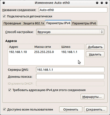 Небольшой гайд с картинками о том, как можно мышкой "натыкать" себе статичный IP в Ubuntu. Подразумевается, что сетевое соединение у вас исправно работает, и что статичный IP у вас есть (в моём случае, это просто любой локальный IP для роутера). Итак, для начала узнаем текущие параметры соединения: